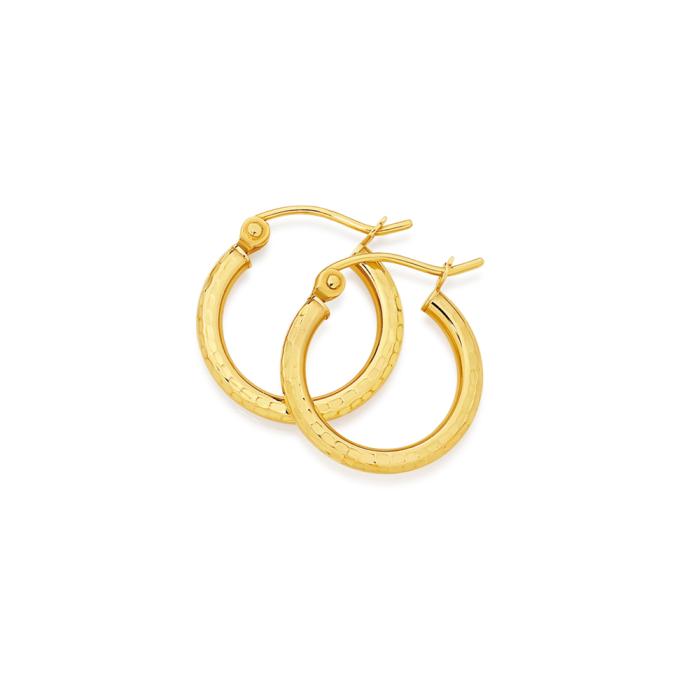 9ct Gold Diamond-Cut Hoop Earrings. Approximate Dimensions - 2mm Width x 10mm Inner Diameter. All of our 9ct gold hoop earrings are hollow unless stated otherwise. Hollow Jewellery pieces are considered occasional pieces, and require a certain level of care to ensure they are always looking their best.