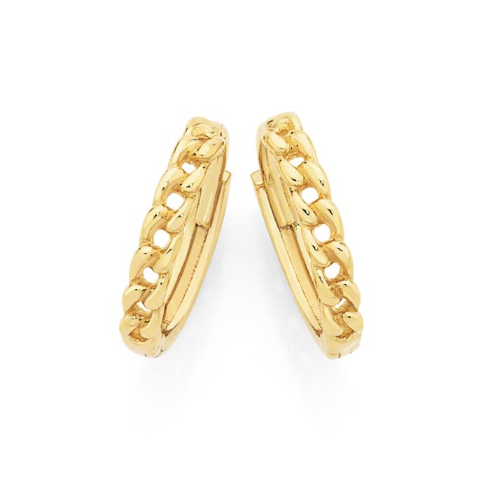 European Made 9ct Gold Curb Link Huggie Earrings. Approximate Dimensions - 2mm Width x 10mm Inner Diameter.