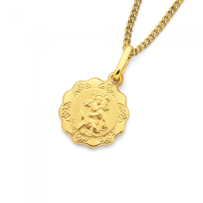 Italian Made 9ct Gold Hollow Scalloped Edge Round Saint Christopher Pendant - Approximate Dimensions 12mm x 19mm including Bale Saint Christopher is revered as the patron Saint of travellers. Gift your loved one a Saint Christopher medal for protection blessings during travel.
