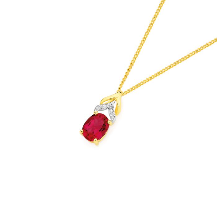 9ct Gold Created Ruby & Diamond Oval Cut Slider Pendant, Created Ruby Stone Size = 8*6mm