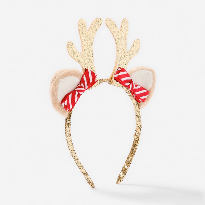 Christmas Reindeer Headband - Red, White, Brown and Gold Tone