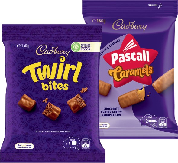 Pascall Chocolate Share Bag 160‑185g or Cadbury Bitesize 120‑150g Selected Varieties
