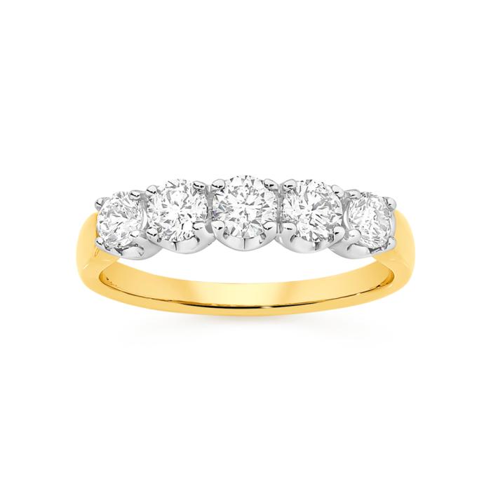 9ct Gold Diamond 5 x Round Brilliant Cut Claw Set Band Total Diamond Weight =1.00ct